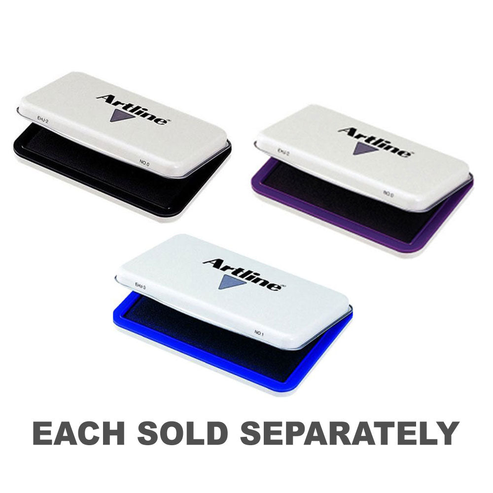 Quality stamp pads with metal and plastic casing and a fabric ink mat. Waterbased Ink, dye stuff ink, refillable. Artline stamp pad that won't dry out when left open for a prolonged period of time.