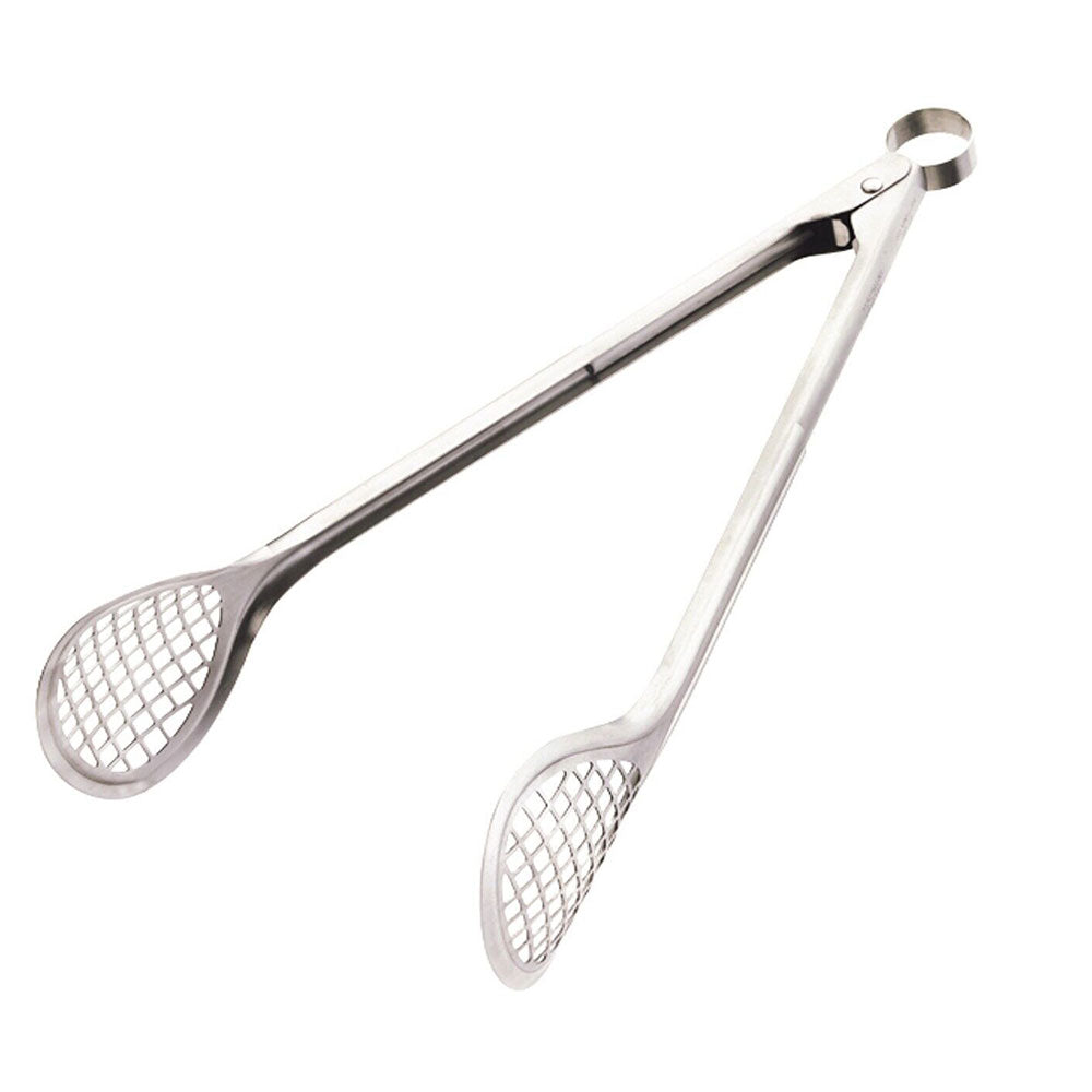 With the stainless steel Fry and Grill tongs from Cuisipro you can pick up foods off of the grill or our out of the fryer. The wide shape of the tong heads combined with the holes allows for fats and oils to drain off of the foods more easily. A patented locking mechanism will keep tongs closed for easy storage. These 12-inch grill and fry tongs are made with commercial quality stainless steel and dishwasher safe for easy cleaning. strives to produce products that work well and are aesthetically pleasing.