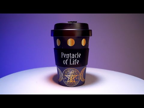 • Matching black anti-spill lid and protective silicone band with 'Pentacle of Life' in a striking white font.