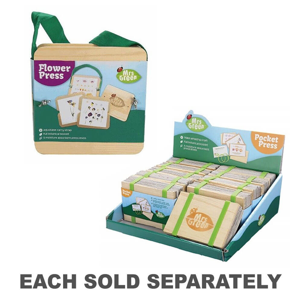 The wooden flower press kit is available in two sizes. The pocket size is great for kids and beginners - you can put it in your pocket on a walk in the woods or a stroll in the park! You can even take it on holiday with you to discover whole new varieties of flowers in a different location! Kids will uncover a passion for botany and an interest in crafts in the process!