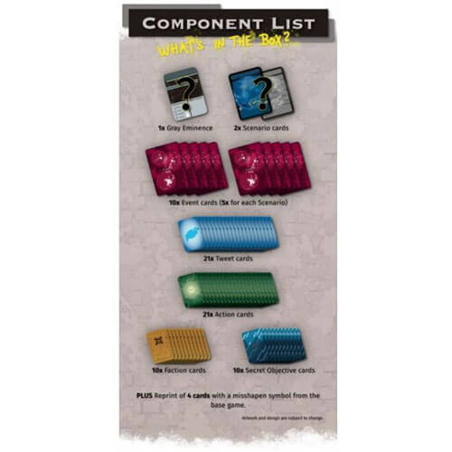 Gray Eminence is a 3-5 player game lasting 60-90 minutes, in which players take the roles of powerful puppet masters in the modern world, each working towards common goals as well as their own, secret, agenda.
