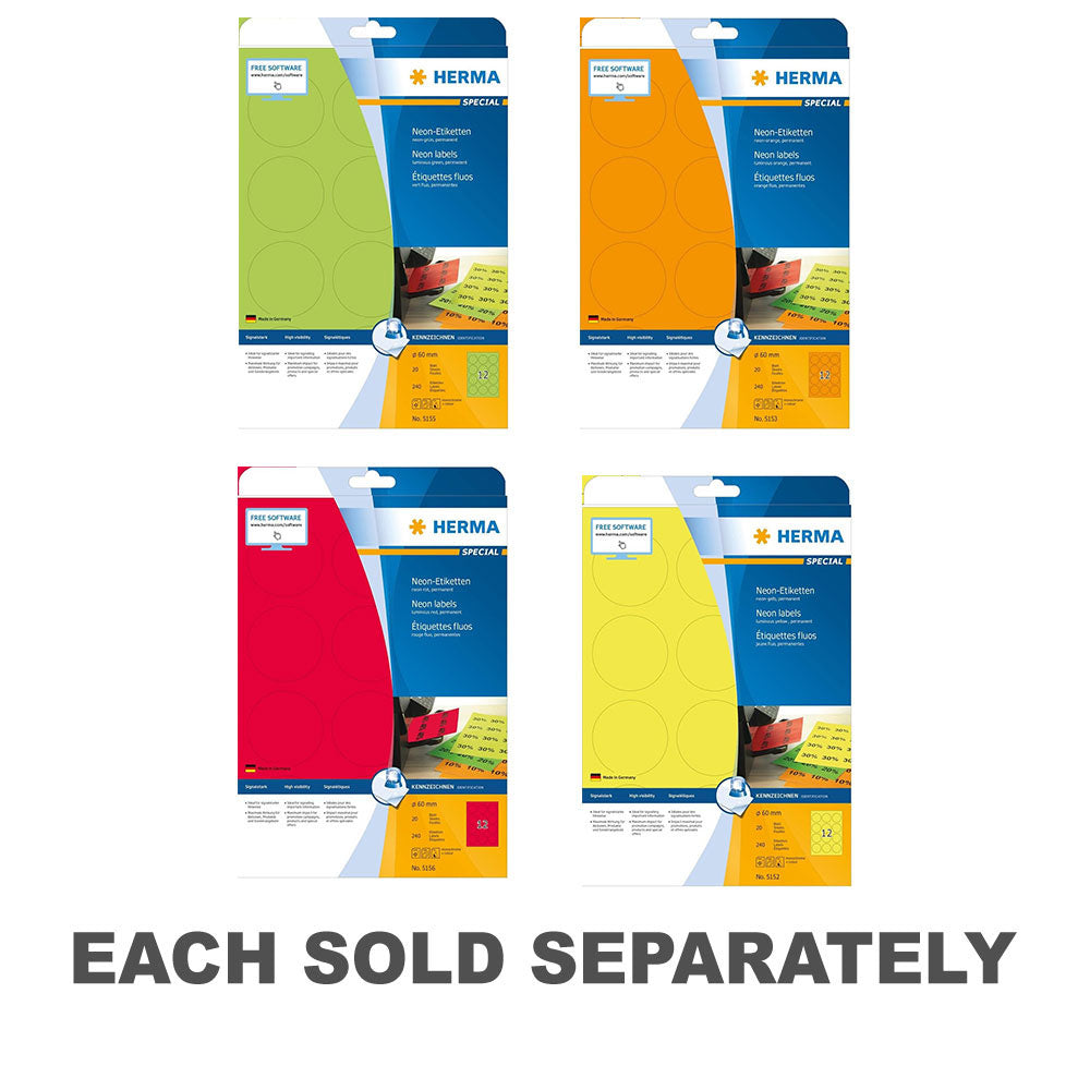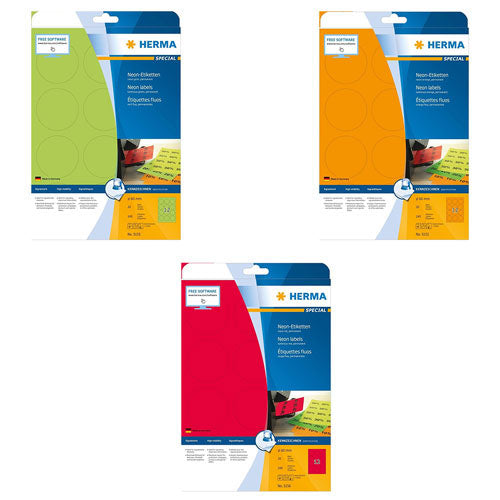 Herma Round Luminous Neon Labels A4 20pc 60mm