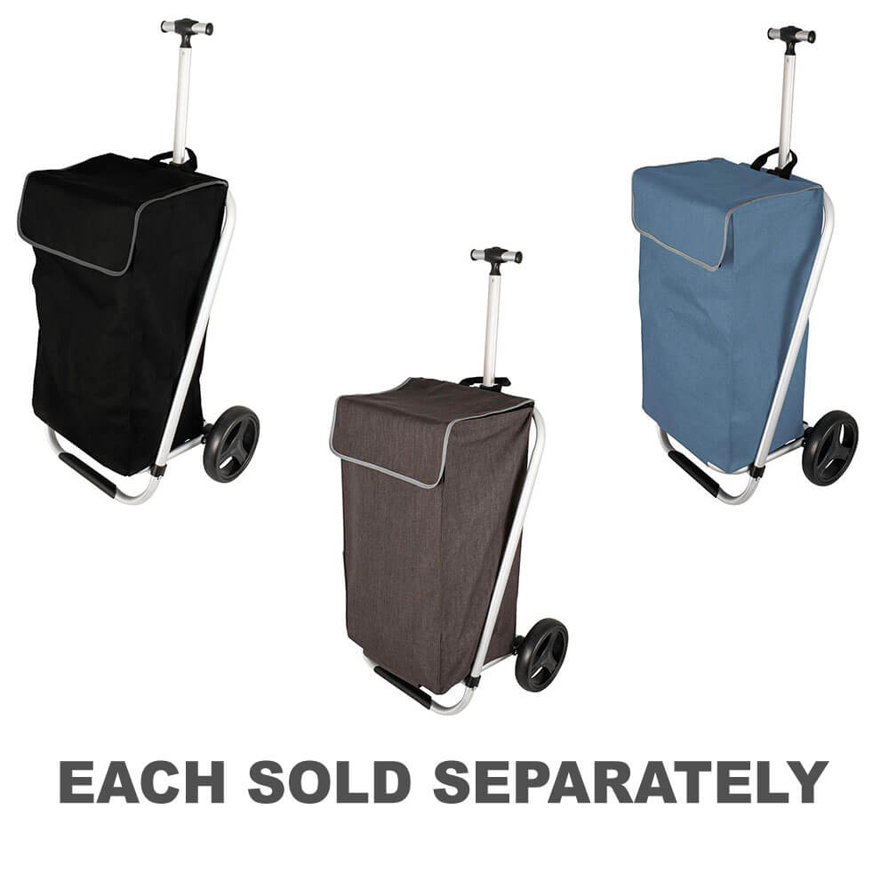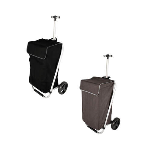 A spacious, foldable carrier that features two large wheels that can carry heavy loads, making shopping easier.