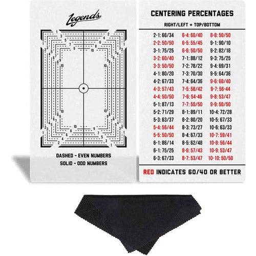 The card grading centering tool is essential for all collectors in the sports card trading hobby! You can determine whether the card is worthy of grading based on the centering and condition of the card. Our easy to use ratio scale will help you determine if you want to send in your card to PSA or BGS! Centering isn't the only factor that determines a grade, but it is one of the most important! Our safe and soft cleaning cloth will also help you wipe your cards down before using the tool or submitting for grading so that you don't have to worry about dust or scratches when using the tool.