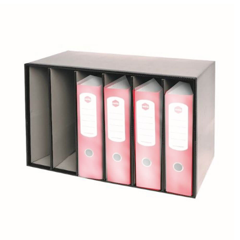 6 compartments which can be used to store files and binders or turned on its side can be used as shelves