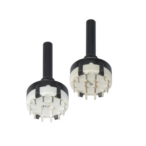 These switches have a removable ring with tab which can be inserted into the switch several ways to your particular requirements. For example, if you purchased a 1 pole x 12 way (max) switch you could convert it to, say, 1 pole 7 way between stops. They have a standard 1/4 shaft. Panel hole 10mm.