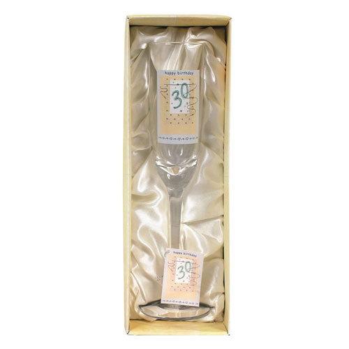 • Celebrate the big 3-0 in style with this cheerful flute that adds a touch of elegance to any birthday party.