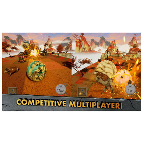 • Build defenses and race to destroy your opponents in up to 4-player online multiplayer, or head-to-head in 2-player split-screen action.