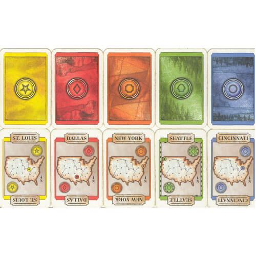 TransAmerica is a simple railway game. Each player has a set of five cities strung across the U.S. that need to be connected by rail. Players place either one or two rails each turn.