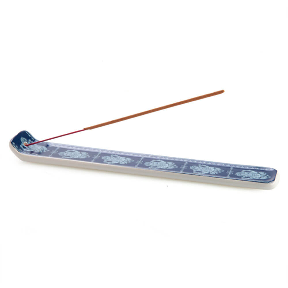 Brûle-encens blanc et bleu représentant la divinité hindoue Ganesha. Fabriqué à partir de céramique de qualité