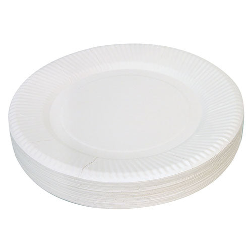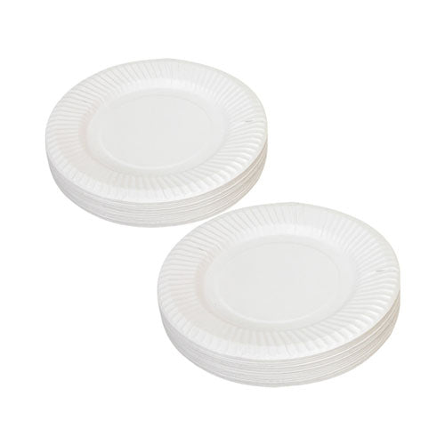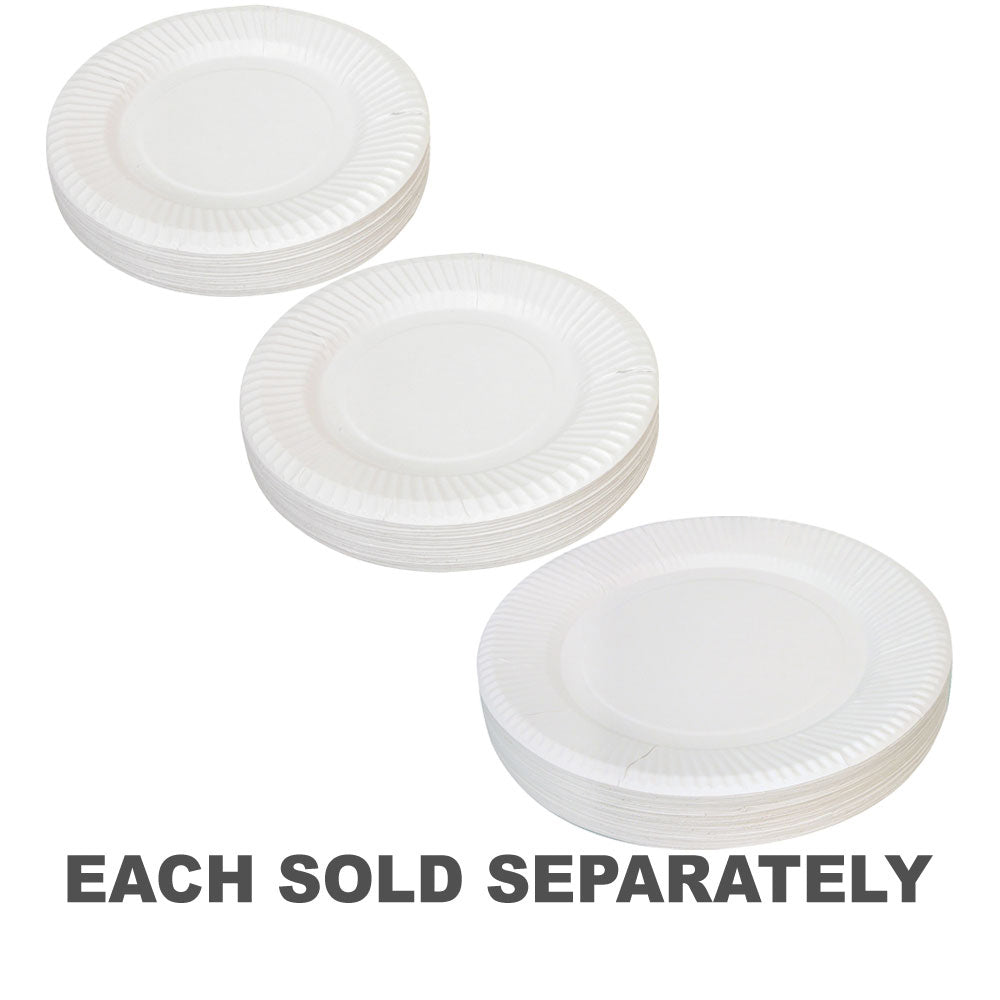 • Pack of 50 white uncoated paper plates