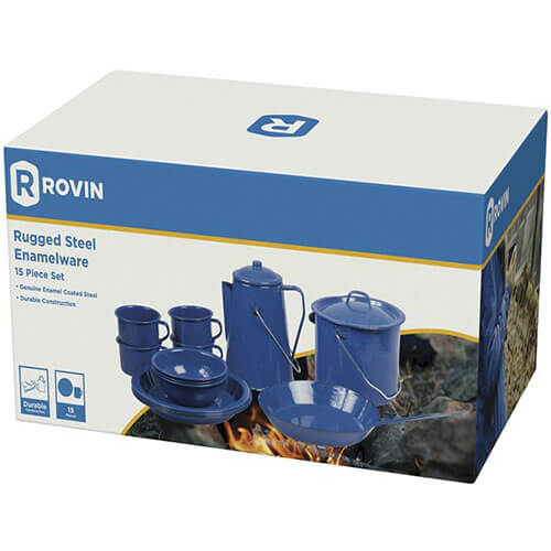 Ensemble de 15 pièces en acier émaillé pour feu de camp