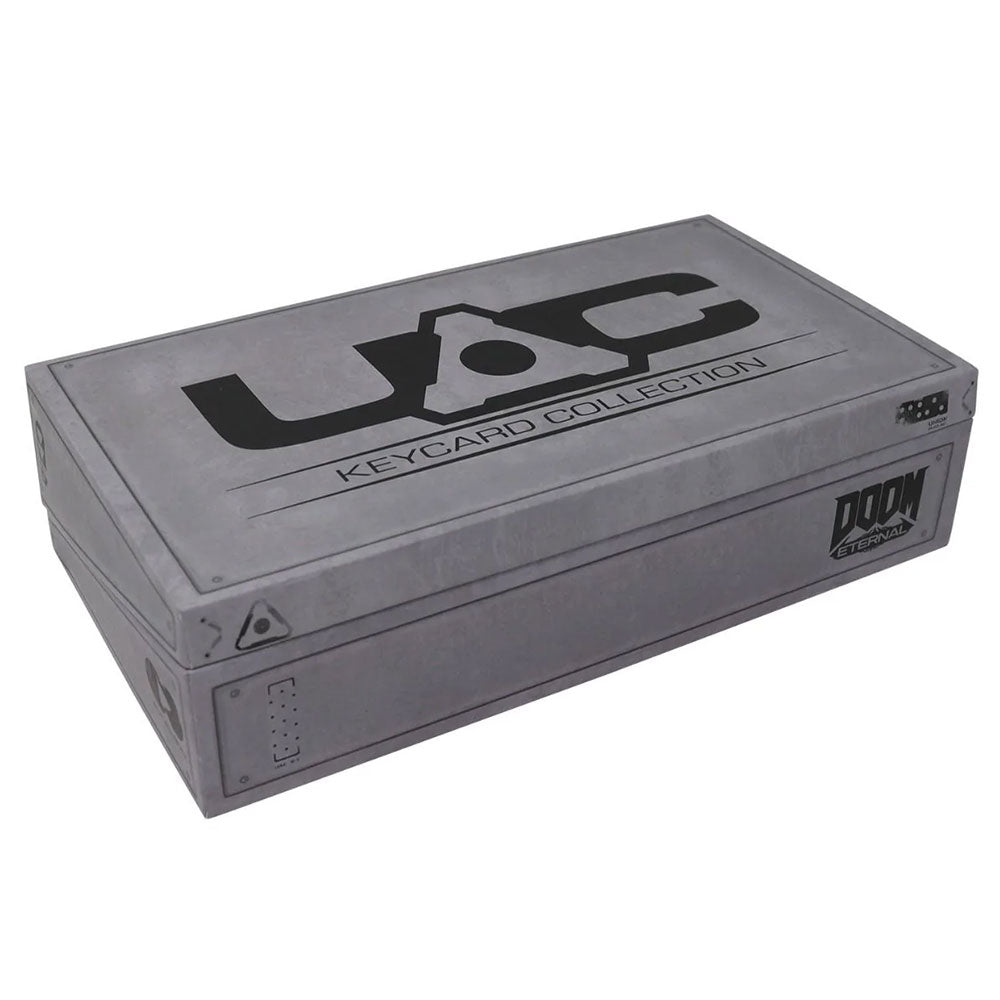 • Une réplique en jeu de Doom Eternal de 2020, cette carte en métal en relief est peinte en rouge et présente le logo UAC dessus.