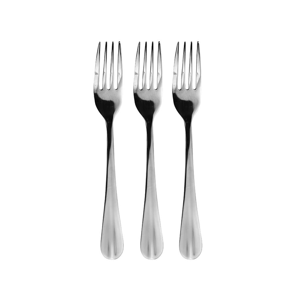 L'ensemble de 3 fourchettes de table Avanti, avec son motif simple et classique, est conçu pour compléter n'importe quelle table. Parfaits et suffisamment durables pour un usage quotidien, ces couverts sont fabriqués en acier inoxydable de qualité et comportent des poignées bien équilibrées avec une ligne verticale élégante pour un look intemporel et élégant.