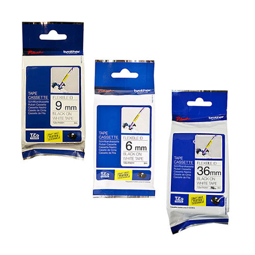 • Étiquette surfaces incurvées avec Brother Flexible Black sur ruban adhésif blanc