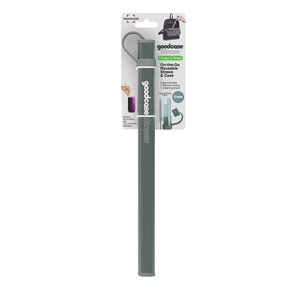 • Ensemble de deux pailles réutilisables en acier inoxydable avec buisson de nettoyage dans un boîtier de transport pratique dans l'ardoise