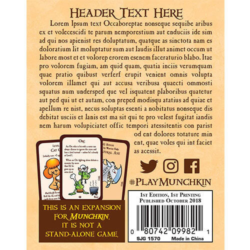 • Il s'agit d'une extension pour Munchkin ; ce n'est pas un jeu autonome.