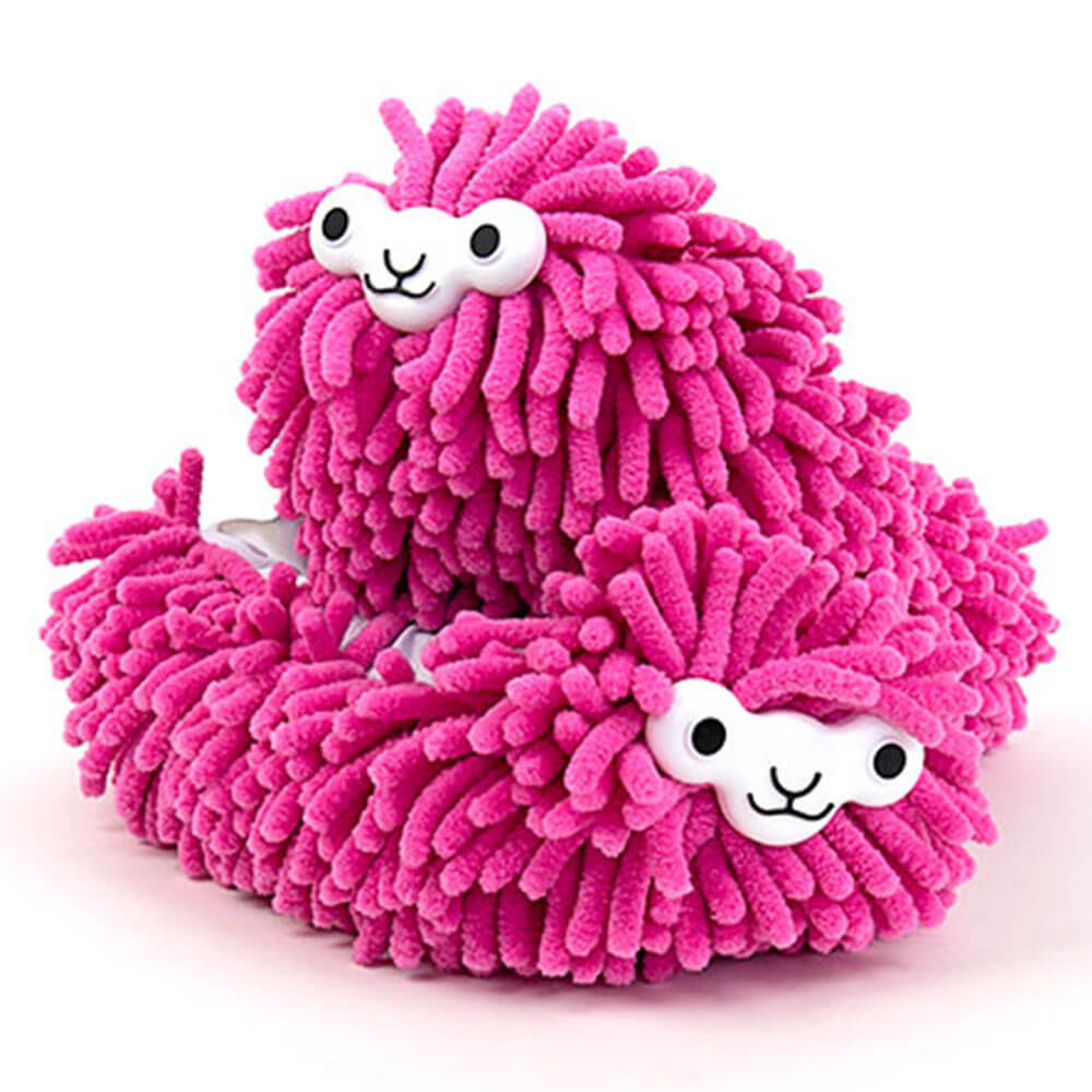 • Chaussons de nettoyage fantaisie amusants au design de lama rose.