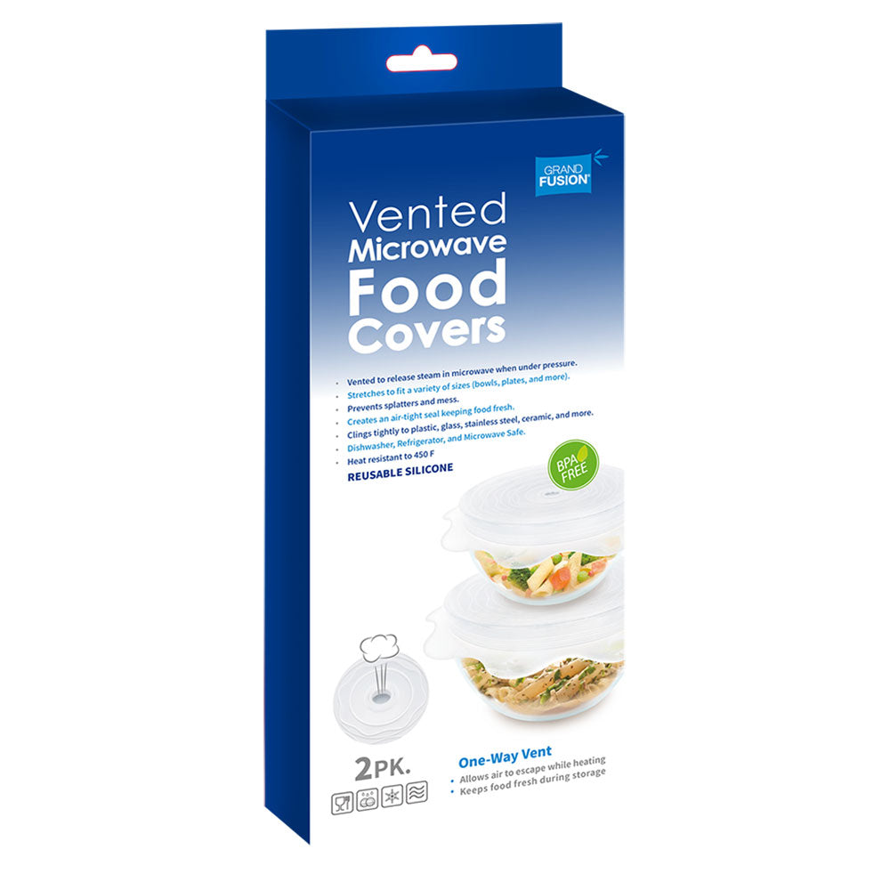 Chauffer les restes avec le révolutionnaire des couvertures de nourriture micro-ondes en silicone ventilées de Grand Fusion. Ces couvertures micro-ondes extensibles couvrent n'importe quel plat jusqu'à 30 cm, créant un joint étanche à l'air. Convient pour l'utilisation des micro-ondes jusqu'à 232C, les évents intégrés libèrent la vapeur à mesure que la pression se construit.