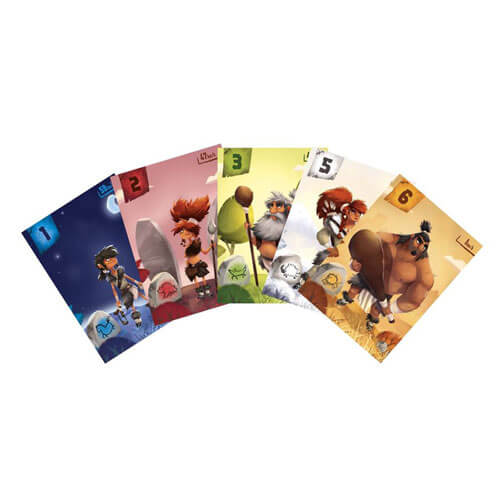 • Lorsque vous répondez aux souhaits des Anciens en peignant votre grotte de certaines manières - comme compléter une ligne horizontale ou relier des coins opposés ou entourer un animal légendaire de tous les côtés - vous placez un ou plusieurs jetons totem sur ce défi. Le premier qui défausse ses huit jetons totem gagne.