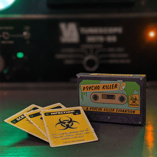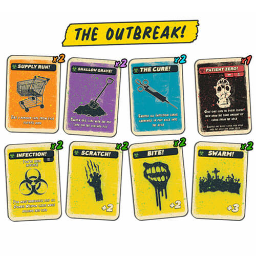 C'est un jeu dans votre jeu de Psycho Killer. Il y a deux infections dans le deck, et si vous les récupérez, vous êtes susceptible d'être attaqué par des zombies. Vous voudrez transmettre l'infection à vos amis dès que possible si vous souhaitez survivre !