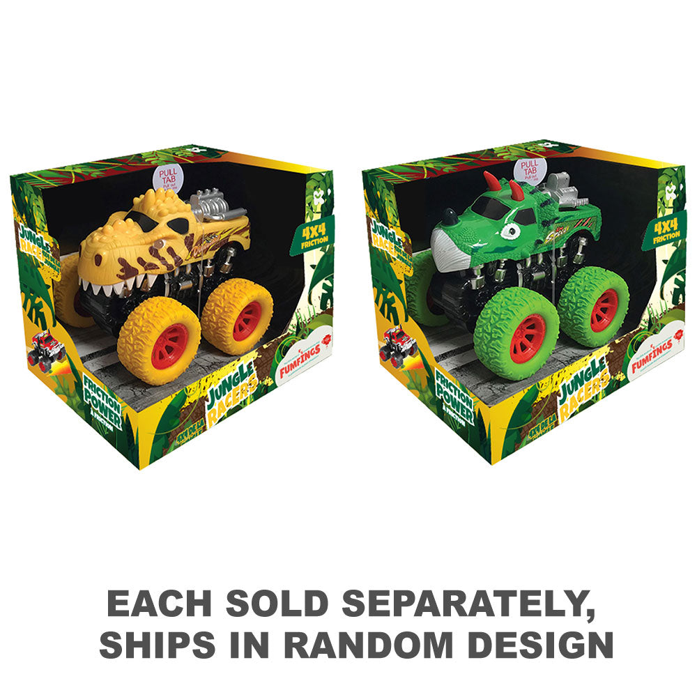- Dino-themed friction-powered 4x4 truck