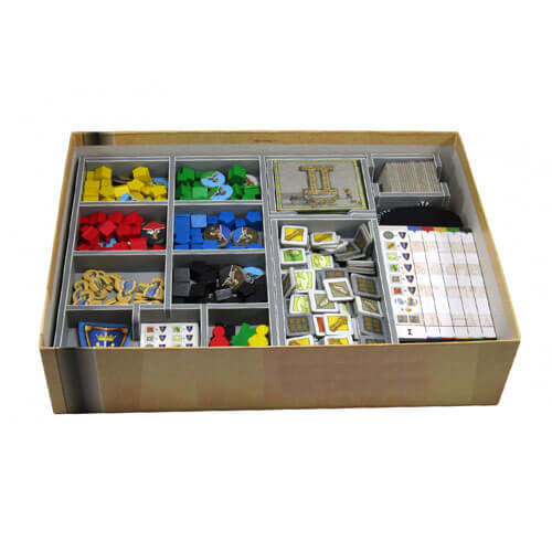 • Cet insert est conçu pour être compatible avec Orleans® et comprend un espace pour l'extension du 5ème joueur. La conception offre à la fois un stockage efficace et un jeu amélioré. De nombreux plateaux peuvent être utilisés pendant le jeu, et ils facilitent grandement les temps d'installation et de dégagement. Les planches et les planches des joueurs agissent comme un couvercle sur le dessus des plateaux.