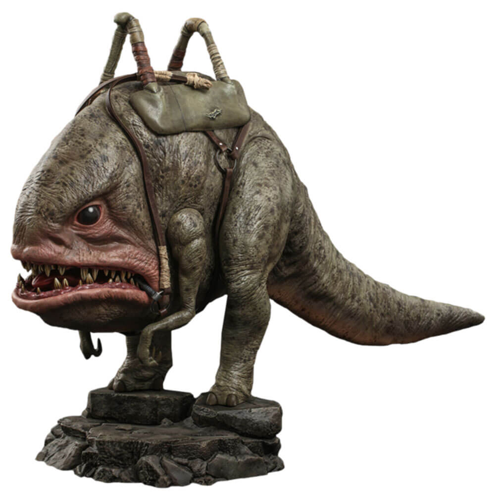 • La figurine d'action Blurrg 1/6th Scale Hot Toys a été authentiquement conçue sur la base de la ressemblance de la créature dans Star Wars : The Mandalorian, mettant en valeur des détails peints à la main avec une tête et un corps finement sculptés, et avec une articulation dans les jambes et les bras. Blurrg mesure 14,5 pouces de haut et 23,6 pouces de large, et est également livré avec une base d'affichage à thème rocheux et une selle pour que le Mandalorien puisse monter au sommet de la redoutable bête.