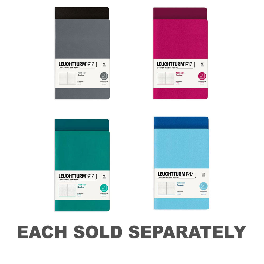 Ready to embrace creative freedom? Look no further than the Leuchtturm Twin Pack Jottbook Dotted, offering two dotted notebooks for your sketching, bullet journaling, and more. Say goodbye to creative limitations and hello to endless possibilities with its dotted pages. With its A5 size and durable construction, you'll have the tools you need to bring your ideas to life with precision and flair. Get ready to unlock your creativity with the Leuchtturm Twin Pack Jottbook Dotted, and let your imagination run wild on its versatile pages.