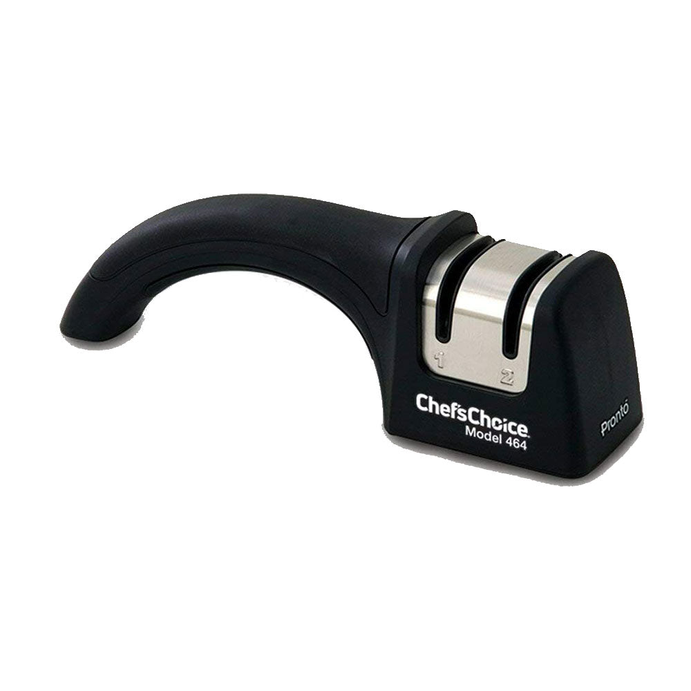 Choix du chef Pronto Manual Diamond Hone Assemblance 464 est le pointeur manuel le plus rapide du marché. Le 464 comprend deux étapes, une pour l'affûtage et une seconde pour le rasage / le polissage pour un bord en forme de rasoir et en forme d'arc qui est fort et durable. Les abrasifs à 100% diamant sont utilisés aux étapes 1 et 2, et la roue abrasive diamant maintiendra la forme indéfiniment et affinera tout couteau en alliage. Les abrasifs de diamant de taille micron à l'étape 2, laissez votre couteau avec un bord poli très pointu. Le contrôle précis de l'angle de biseau s'accumule à un bord de 20 degrés. Le pronto est sûr à utiliser sur le bord droit et les couteaux dentelés; Couteaux de cuisine et ménage, couteaux de poche et couteaux de filet de poisson.