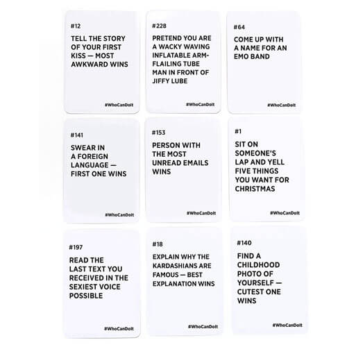 • 250 cartes d'action pour défier vos amis pour voir QUI PEUT LE FAIRE...