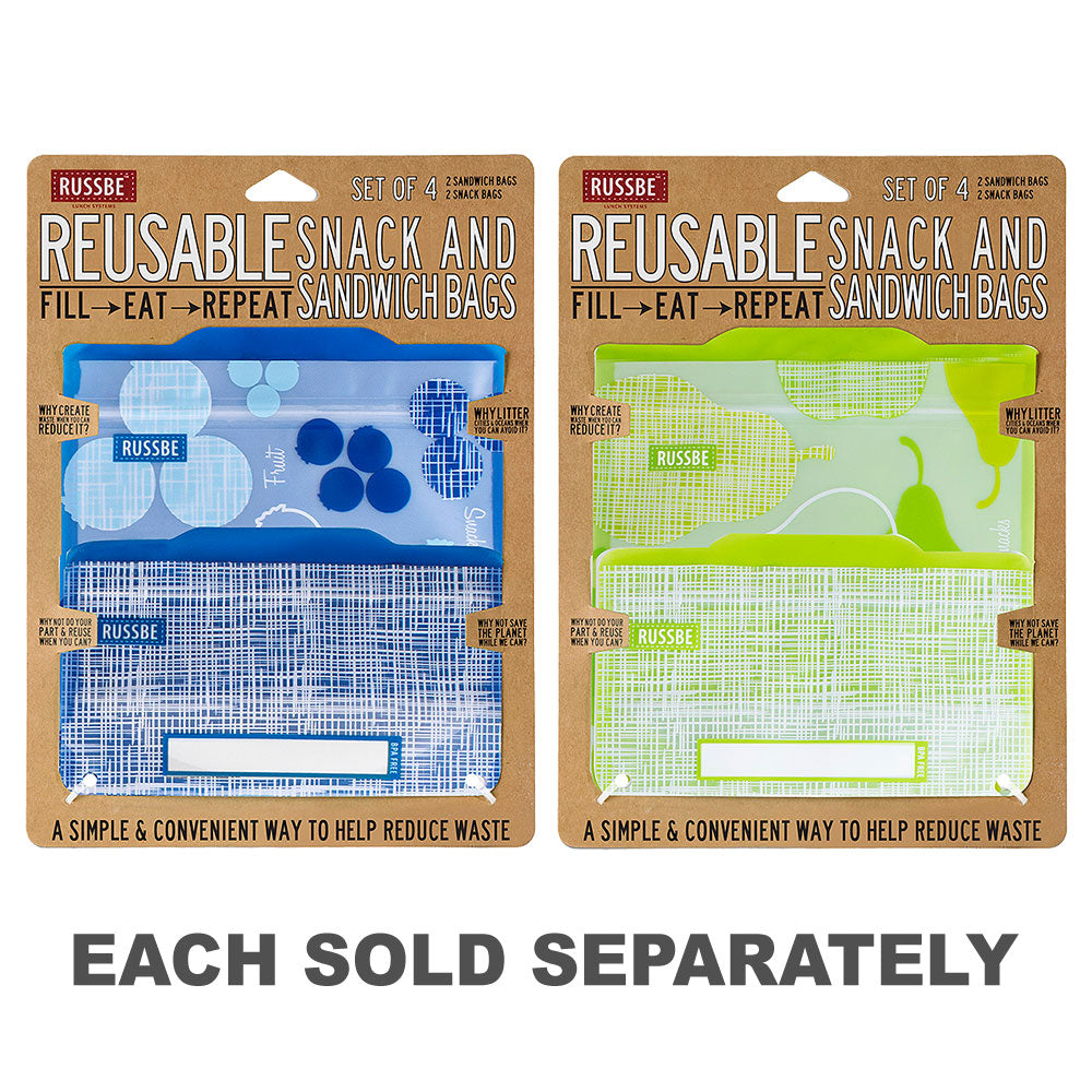 Durable et réutilisable, cet ensemble de 4 sacs de collation et de sandwich de Russbe est une façon écologique et tendance de garder la nourriture fraîche. Doté de coutures renforcées et d'un sceau de verrouillage pour garder la nourriture fraîche, la conception de stand-up à grenages assure une expérience de collation / repas sans gâchis. BPA, PVC, latex et sans phtalates, vous pouvez être sûr que vous faites un choix sain pour vous et votre famille sur le pouce - idéal pour stocker des restes, mariner des aliments ou lorsque vous préparez le déjeuner pour le travail ou l'école.
