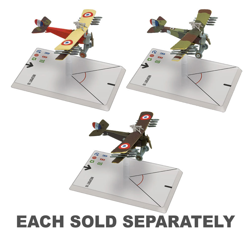 Each of these WW1 Wings of Glory® Airplane Packs includes is a ready–to–play Nieuport 16 model, painted and assembled, 100% compatible with any other WW1 Wings of Glory game product. In each pack you will find all you need to play with the airplane: a special base, a flying stand, and a deck of Maneuver and skill cards.