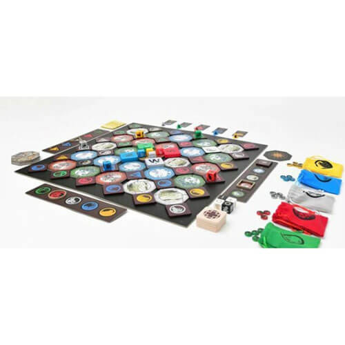 40 carreaux de bois (2 yin-yang, 4 directionnels, 5 temples, 5 palais, 20 villes, 4 tours)
