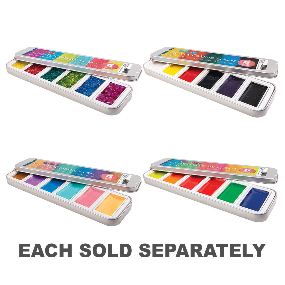Presented in a stylish, long-lasting, and resealable tin, Creamy Colours Watercolours by Zart Glitter set are great for the studio, art room, classroom, at home and plein air settings.