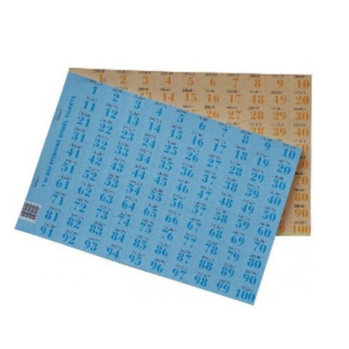 Bladen zijn 360 mm x 240 mm en bevatten 64 individueel geperforeerde tickets op elk vel. Er zijn vijf vellen kleuren per boek - groen, blauw, rood, oranje en paars. Er zijn in totaal 50 vellen in rotatiekleuren in elk boek, waardoor je in totaal 3.200 tickets hebt. Geschikt voor kleine loterijen zoals een vlees- of zeevruchtenlade of voor het uitvoeren van meerdere loterijen in één nacht.