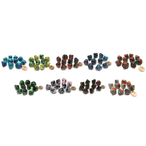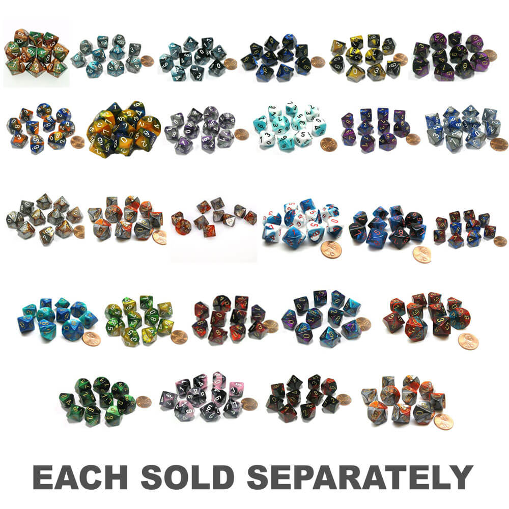 Deze set van 10 Gemini -dobbelstenen look, feel en rollen goed en zal een geweldige aanvulling zijn op elke game of collectie. Het bovenste nummer wordt op een rol gebruikt. De randen zorgen voor eenvoudige vormherkenning en de cijfers zijn ongeveer zo groot mogelijk op elk gezicht. Deze set omvat 10 D10 (tienzijdige) dobbelstenen. Dobbelstenen komen in Clamshell -verpakkingen in de detailhandel. Elke matrijs meet ongeveer 16 mm lang (de hoogte van de hoogte terwijl de dobbelsteen plat zit). Ze zijn ~ 23 mm van punt tot punt.