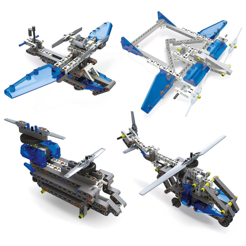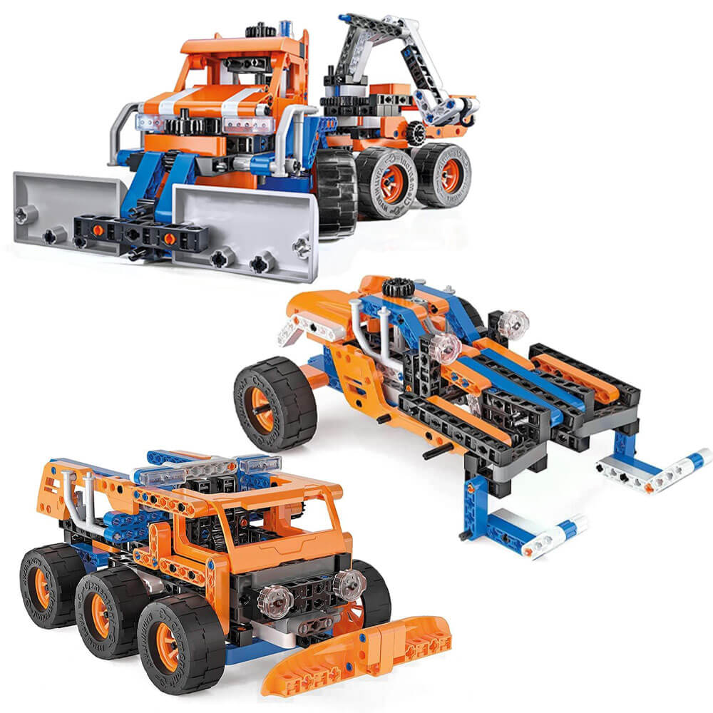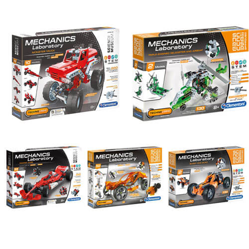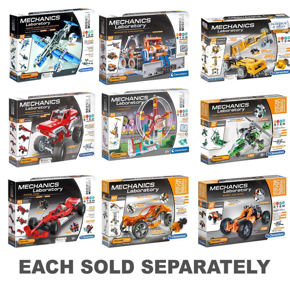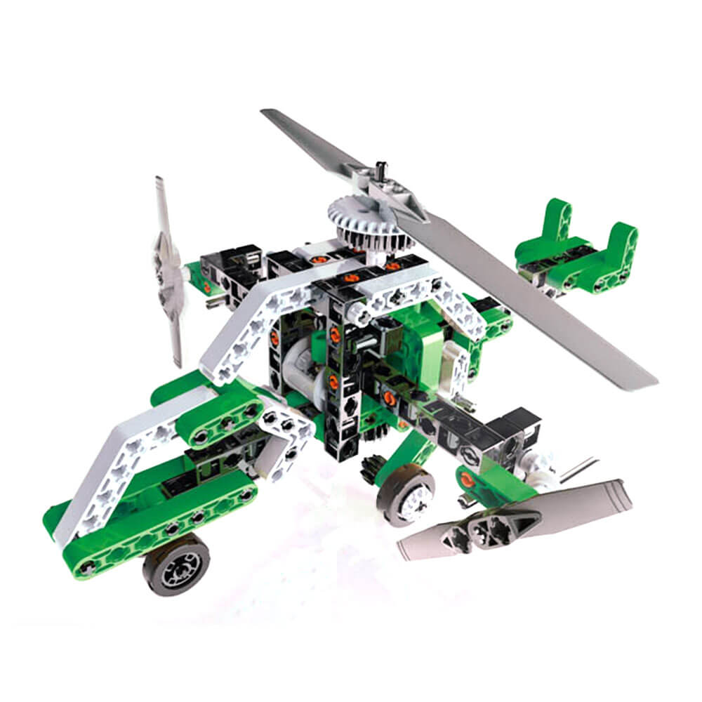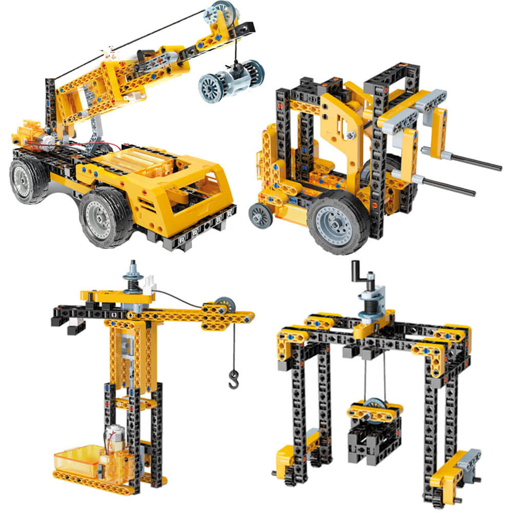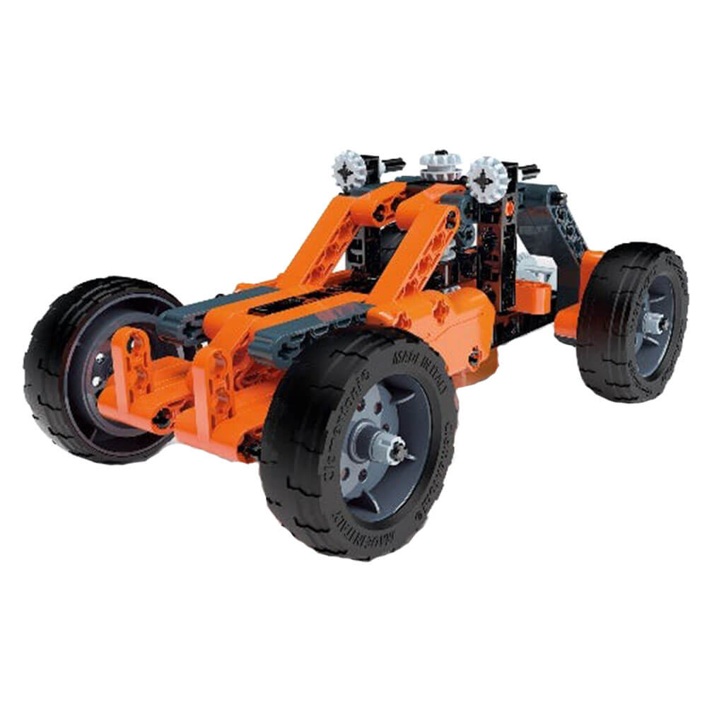 Deze kit bevat meer dan 200 componenten die moeten worden geassembleerd, waaronder: differentiaal-, rack-and-pinion-besturing en cardan joint. Je kunt 10 fantastische en dynamische modellen ontdekken en bouwen! Dankzij de geïllustreerde handleiding wordt uw kind stap voor stap geleid door het bouwen van 10 verschillende modellen terwijl zij de basisprincipes van mechanica en engineering ontdekken. De kit bevat alles wat je nodig hebt om andere modellen te maken, met toenemende moeilijkheidsniveaus, zoals een staaf en zuiger, spider truck, hot rod, monster cross, quad, show truck en offroad racer.