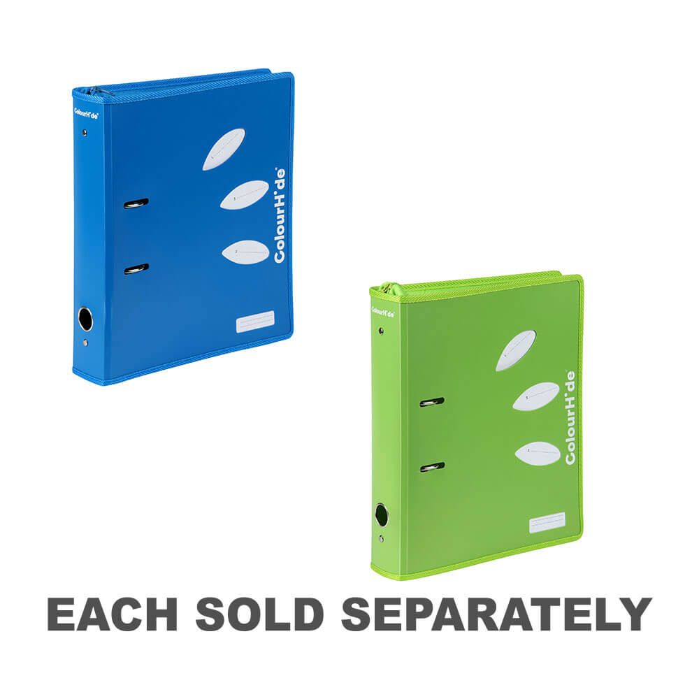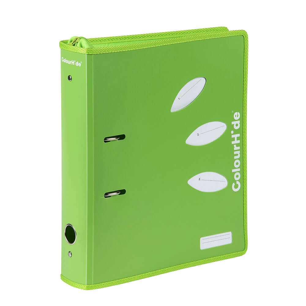 Hendel Arch -bestand - Colourhide - A4 - 70mm - Rits - Green Dit 70 mm ritshendel Arch -bestand is ontworpen en gemaakt met langdurig polypropyleenmateriaal, is vochtbestendig en heeft een ritsfunctie voor extra beveiliging