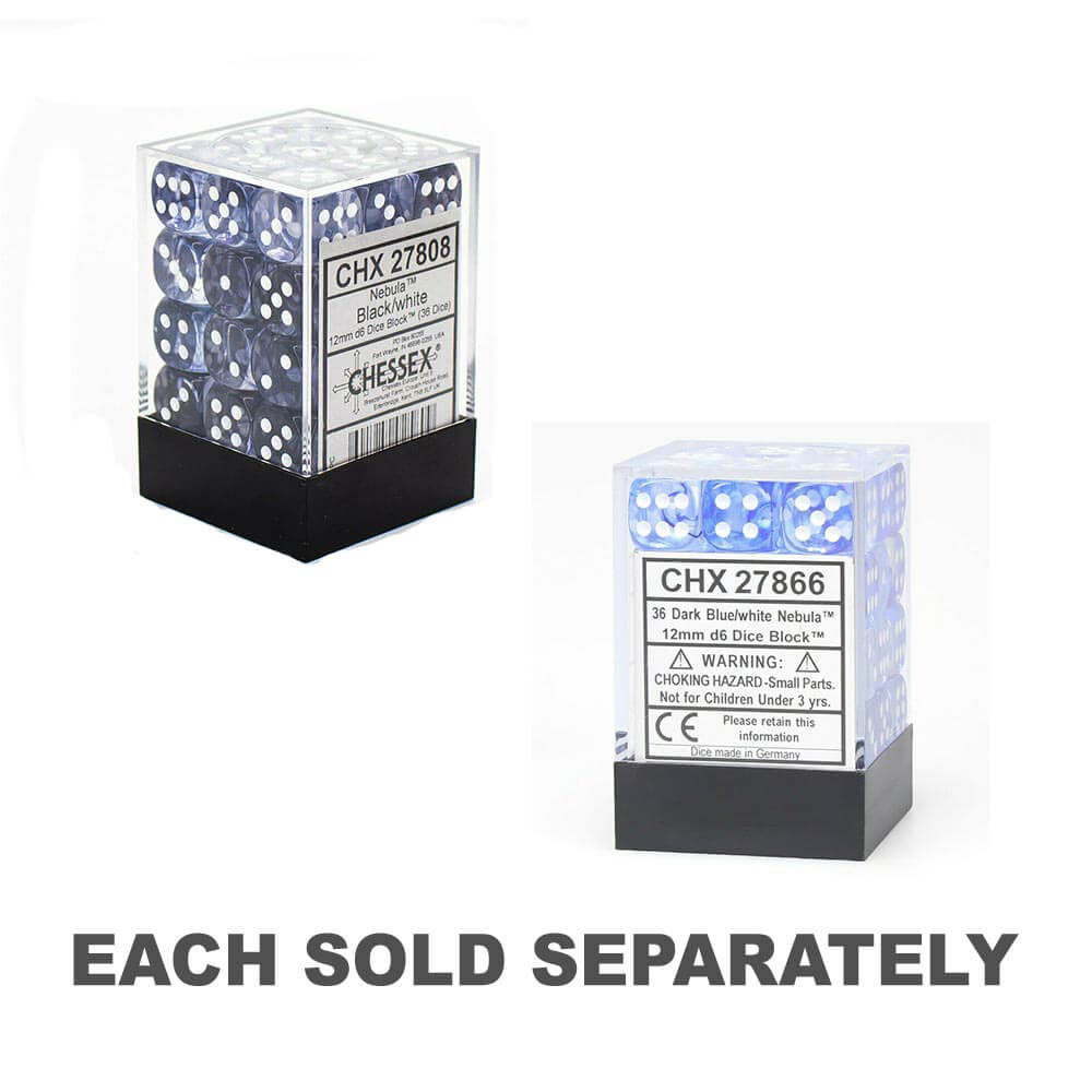 - Nebula 12 mm D6 Chessex Dice Block (36 dobbelstenen) - Zwart met witte pips