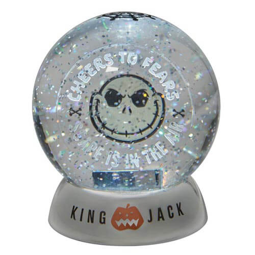 Met beide gegraveerde elementen en een heerlijke sticker, heeft deze waterbal de pompoenkoning op zijn meest oogverblindende. Met de boodschap "Cheers for Fears" en "Chare is in the air" deze sneeuwbol schittert met onheil en Halloween High Jinks.