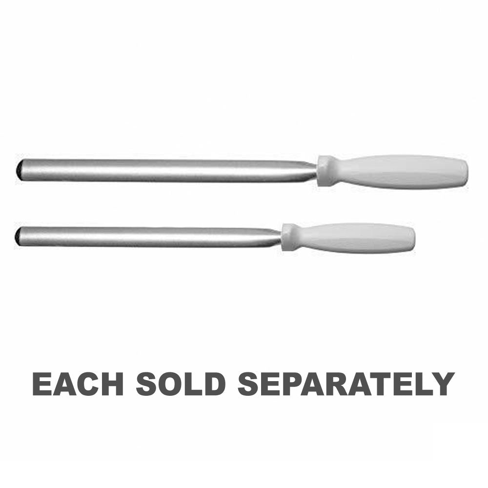 Diamond slijper is een must voor het onderhouden en slijpen van je messen. Deze slijper kan nat of droog worden gebruikt en heeft een Sani-veilige handvat. Het kan worden gebruikt als staal wanneer je je mes erover met een kleine hoeveelheid druk erover loopt of om een nieuwe rand te maken, gebruik je meer druk. ZORG: Slijper moet na gebruik worden gewassen en gedroogd om met metalen fragmenten uit het slijpen te verwijderen.