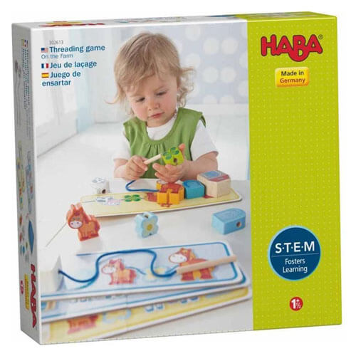 - Inhoud omvat: 2 draden met stabiel, 1 koe, 1 kalf, 1 paard, 1 veulen, 1 klaverblad, 1 bloem, 1 melkklok, 1 hoefijzer, 4 sjablonen en 1 kleine tactiele tas.