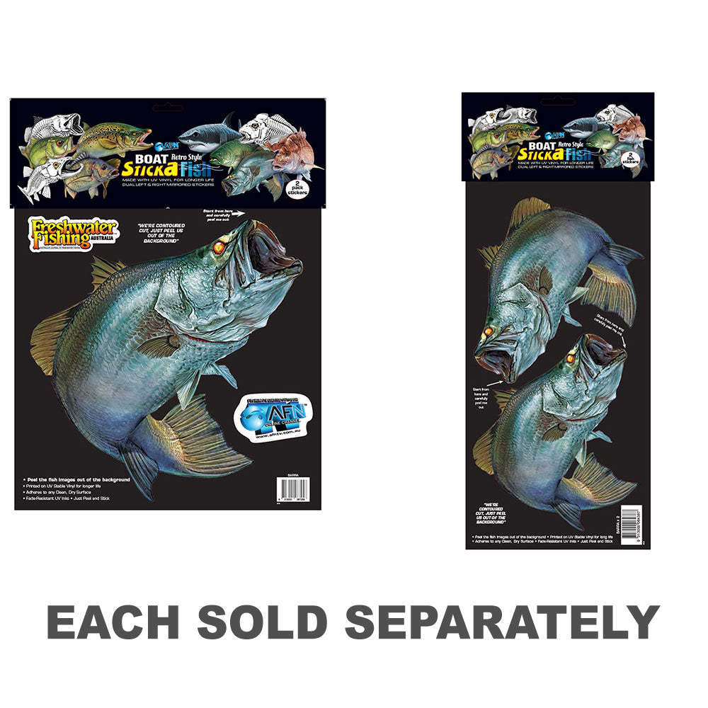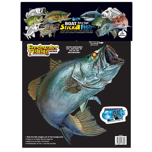 De dubbele retro grote Barra Sticka's zijn hoogwaardige bootstickers van kunstenaar Trevor Hawkins.