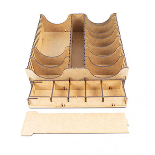 De insert is duurzaam en gemaakt van hoogwaardige HDF. Geen lijm vereist voor montage. Hiermee kunt u alle componenten in de doos vasthouden. U kunt de voorgestelde componenten op de afbeeldingen zien. Deze aanbieding betreft alleen invoegen. Spel niet inbegrepen.