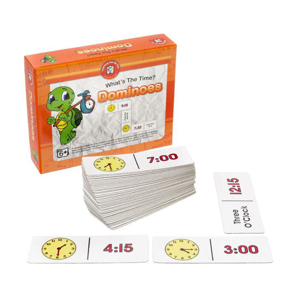 Deze leren kan leuke tijd zijn Domino's Laat je bijpassende analoge tijd visuals om te leren lezen klokken. Deze domino's kunnen worden gespeeld als traditionele dominostenen en het peloton wordt geleverd met een handige activiteitsgids.