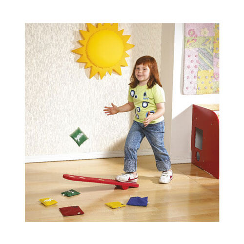Plaats de zitzak aan het uiteinde en stamp aan de andere kant en de zitzak vliegt in de lucht die klaar is om te vangen.