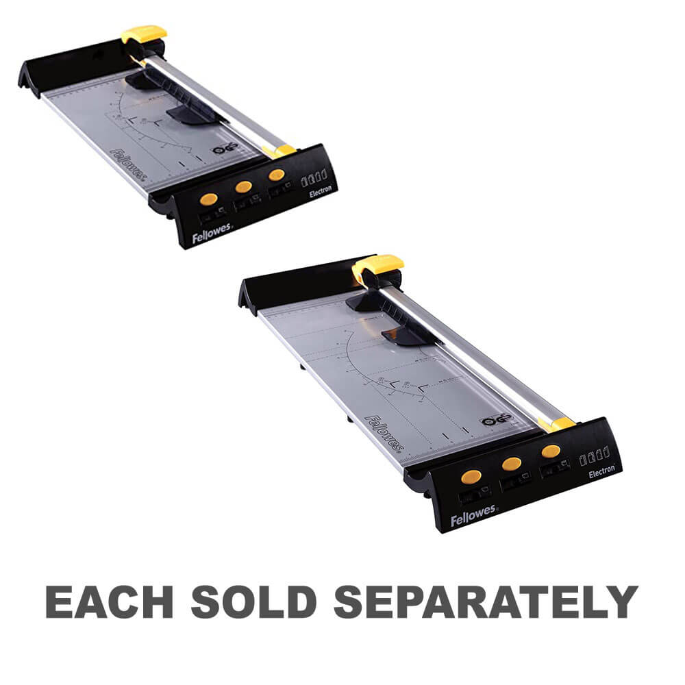 Electron A4 is ontworpen voor frequent gebruik in de kleine kantoor, thuiskantooromgeving. Het heeft een snijcapaciteit van 10 vellen en gebruikt ingekapselde SafeCut -cartridges die alleen het mes blootleggen bij het bijsnijden, waardoor een grotere veiligheidsveiligheid zorgt. Het wordt geleverd met 4 mestypen (recht, golvend, geperforeerd en vouwen) die integraal binnen de basis van de machine kunnen worden bewaard en een papieren klem minimaliseert papierbeweging, waardoor een meer accurate afwerking mogelijk is. Een LED -licht projecteert een rechte lijn die fungeert als een gids voor rechte sneden. De elektron A4 -papieren trimmer wordt vervaardigd met een duurzame metalen basis