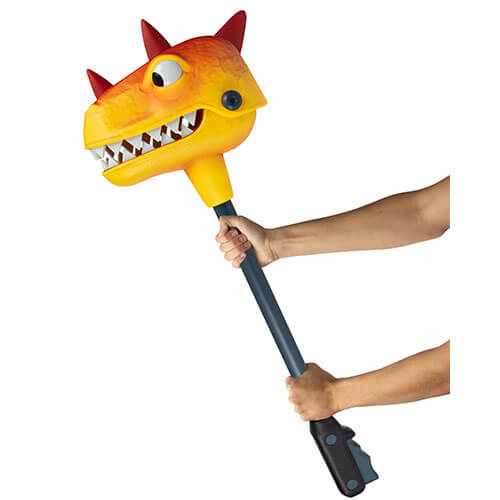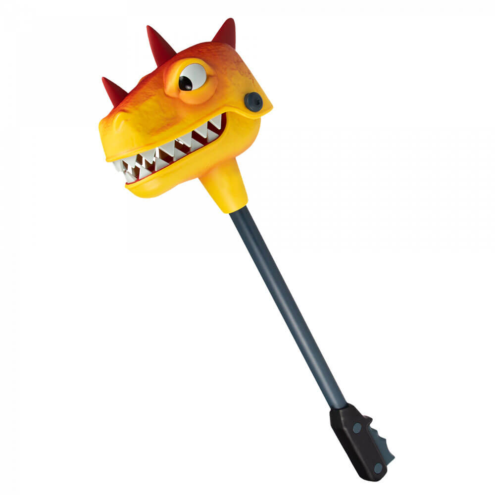 Direct ontworpen uit in-game activa van de epische huid voor de houweel (AKA Harvesting Tool), is de Bitemark Life-Size Replica zorgvuldig gebeeldhouwd en geverfd voor een authentieke look, en is ongeveer 38 "lang. Woest felle dinosaurushoofd op een stok, lijkt op het klassieke Snapper -speelgoed en wordt getoond in premium glanzende fortnite -thema -verpakking.