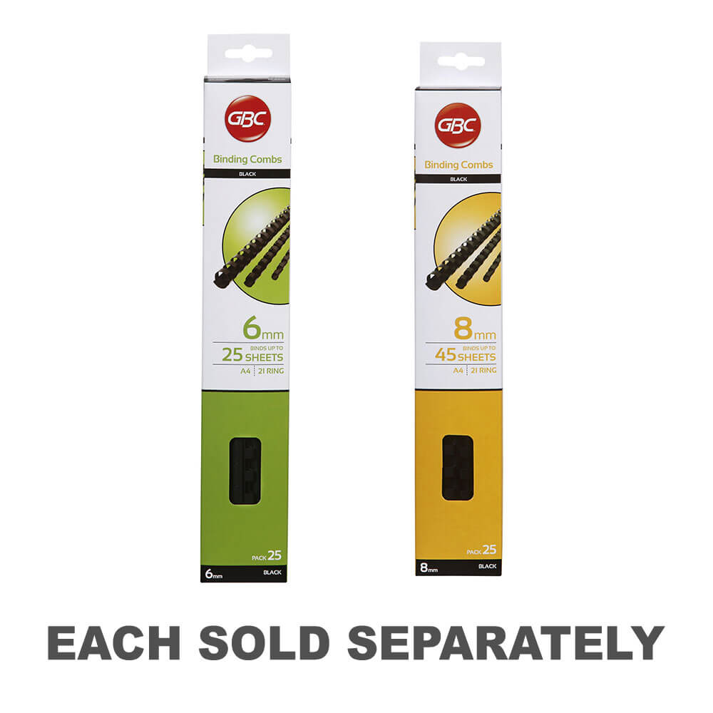 Deze GBC -plastic bindende kammen zijn sterk en duurzaam en voegen een geweldige finishing touch toe aan een reeks documenten, waaronder presentaties, rapporten en projecten voor gebruik van school of thuiskantoor. De 6 mm GBC -plastic bindingskammen hebben 21 lussen die veilig maximaal 25 vellen A4 -papier bevatten.